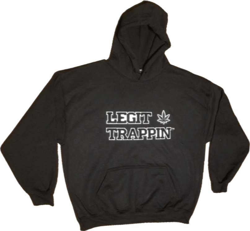 Black "LEGIT TRAPPIN" Hoodie - B&W Logo w/ Cannabis Leaf