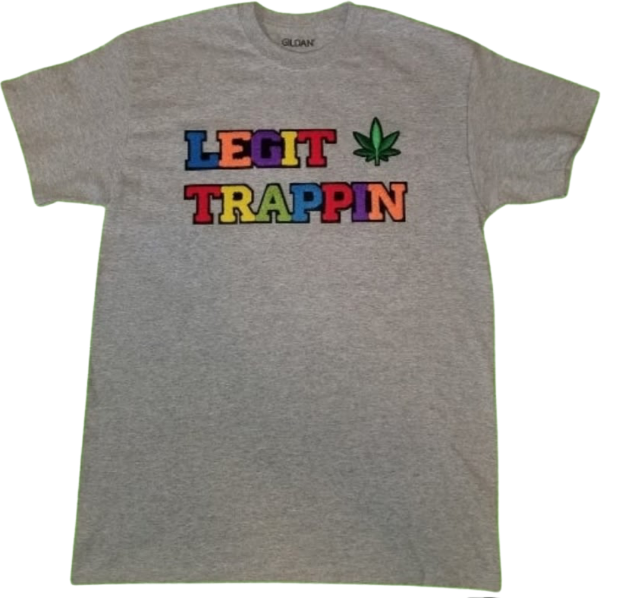Gray "LEGIT TRAPPIN" Tee w/ Cannabis Leaf