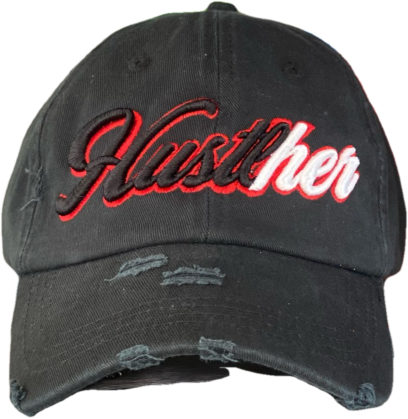 Black "HustlHER" hat- Black, Red, White logo