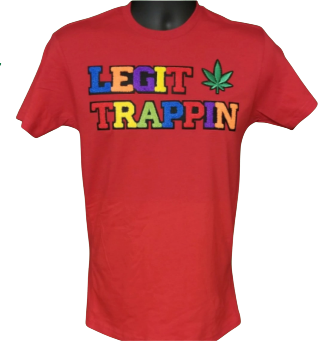 Red "LEGIT TRAPPIN™" Tee w/ Cannabis Leaf
